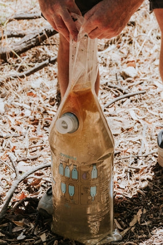 Collect — Treat — Store All-in-one solution — Closed multi-treatment solution with the P&G purifier and charcoal filter. Kit includes; Puribag, 12 P&G packets, draining clip, and sealing rod.