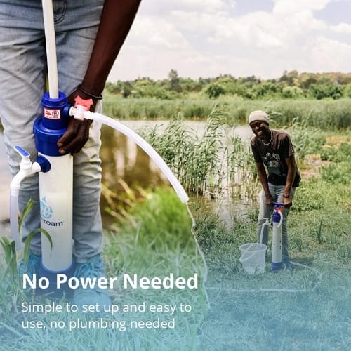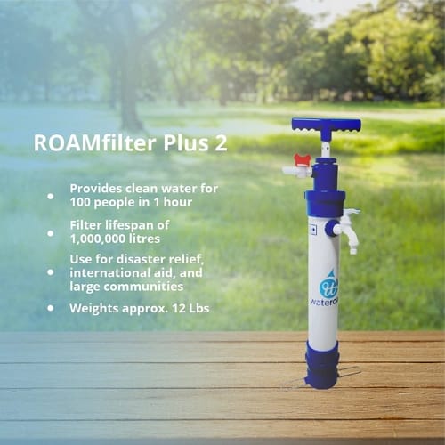 The Wateroam ROAMfilter Plus 2 is a portable water filtration system deployed at the water source. Slim and efficient, the Plus 2 will provide water for large groups of people, making it perfect for providing for families in rural communities.