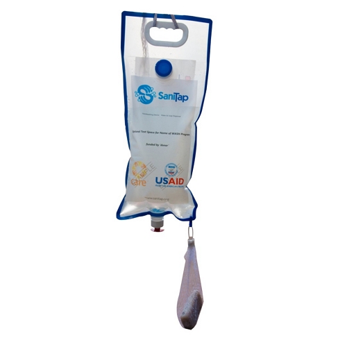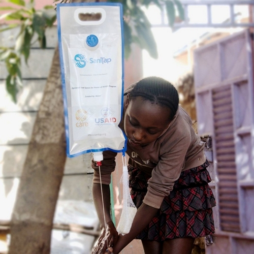 SaniTap is a handwashing system that has a unique spout design that minimizes water use and avoids re-contamination. The device can conveniently be hung by a nail or from a stick and delivers 3 litres of water over 10 minutes – that’s enough for a family of 5 to wash their hands 3 times a day.