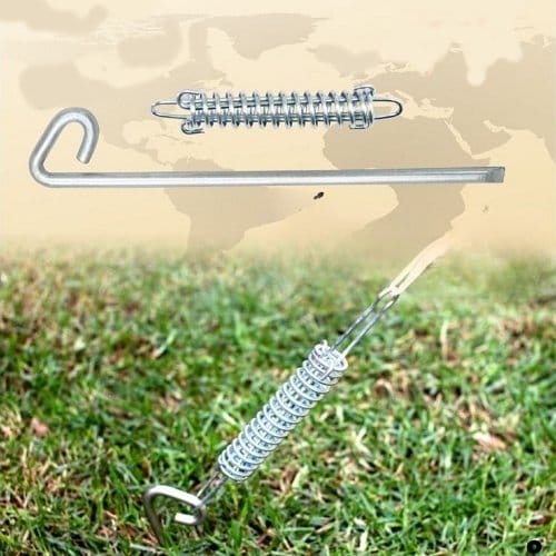 The Tentco Spring Tent Peg is a heavy duty tent peg which is spring loaded to absorb shock and keep your guy lines taught.