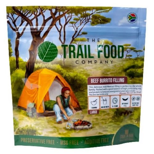 Made by Trail Food, this dehydrated Beef Burrito Meal is a perfect filling for a Burrito or Pita. It consists of a spicy, flavoured beef and vegetable mix. It is all ready to be stuffed into a burrito, pita or shawarma – all you have to do is add water and heat – and in some 15 minutes you’ll be filling your chosen pastry.